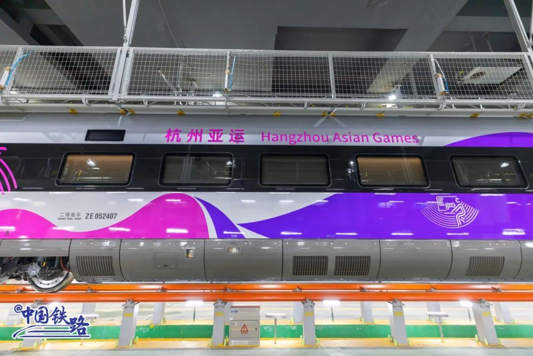 与大家常见的“瑞龙智行”“龙凤呈祥”复兴号智能动车组相比,这款紫色“亚运限定版”列车以“中国特色、浙江风采、杭州韵味”和“润泽江南”为设计主题。