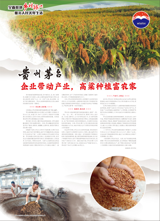 一粒高粱种,种出好生活。优质、高产的高粱品种既保障了茅台对优质原料的需求,也为种植农户增收致富提供有力支撑,满足酒企生产、农户种植、推动农业产业发展三方面需要,为地区经济高质量发展注入强大动能。
