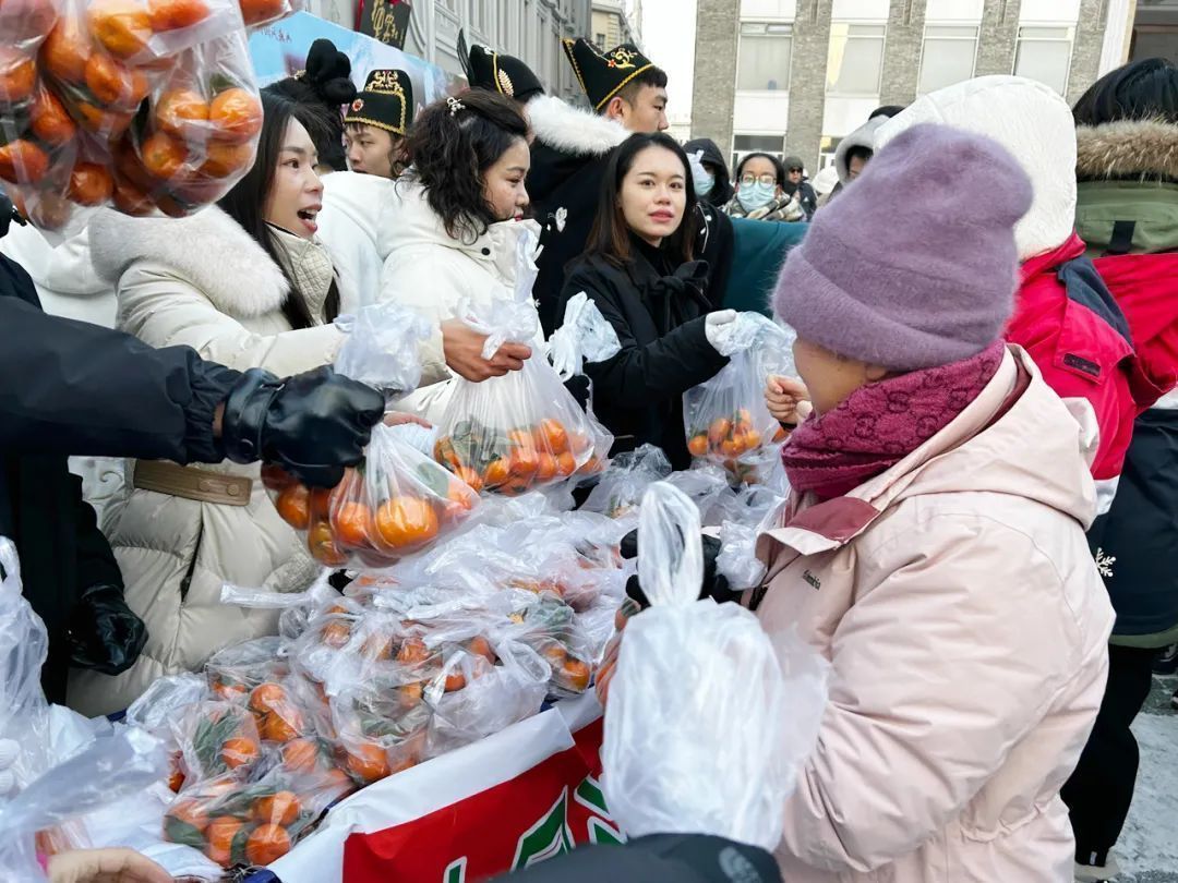 1月5日来自“中国沙糖桔之乡”百色西林县的广西首批砂糖橘已连夜送达哈尔滨并于下午14时开始在中华巴洛克免费发放,收获了一众好评。为了更好答谢东北老铁照顾“小砂糖橘”,广西“老友”再发送大礼包,甜蜜水果再北上,各地追加景区优惠。这个冬天,跨越三千多公里的南北两地因为一群可爱的孩子们有了更紧密、温暖的连接。