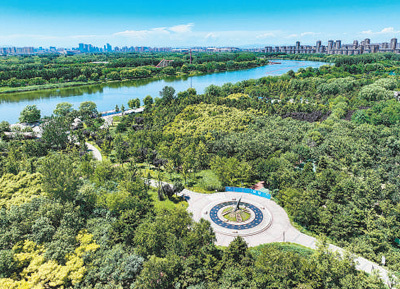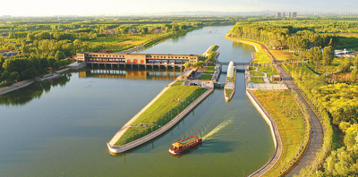大运河通州段蓝绿交织、水城共融的景象。本报记者 贺 勇摄