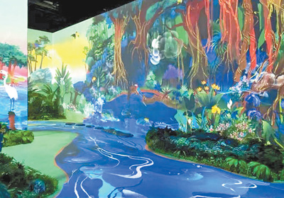 58种古今动植物、50台投影设施营造震撼沉浸感、1000余个动画效果通过互动触发……走进位于北京世园公园植物馆内的“亿年进化——植物历险记”探索体验展厅,一个由远古植物、动物以及水生动植物组成的奇幻光影世界扑面而来,观众仿佛置身于白垩纪时期,沉浸在好玩、好看又长知识的“植物历险记”中。