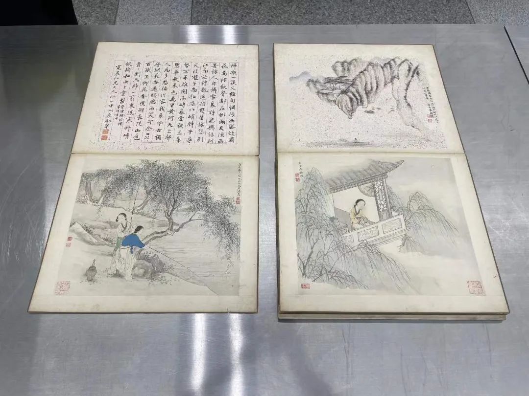 皇岗海关关员在福田口岸出境通道发现1名男性旅客的行李物品机检图像异常,遂将其截查,随后从其黑色行李箱中发现疑似书画文物共计64件。经广东省文物鉴定站鉴定,其中两件为清末颜秋坪题袁绩懋、左锡璇画山水仕女珠联合璧册和清末袁励准题左锡惠画山水仕女图,属于国家禁止出境的一般文物。