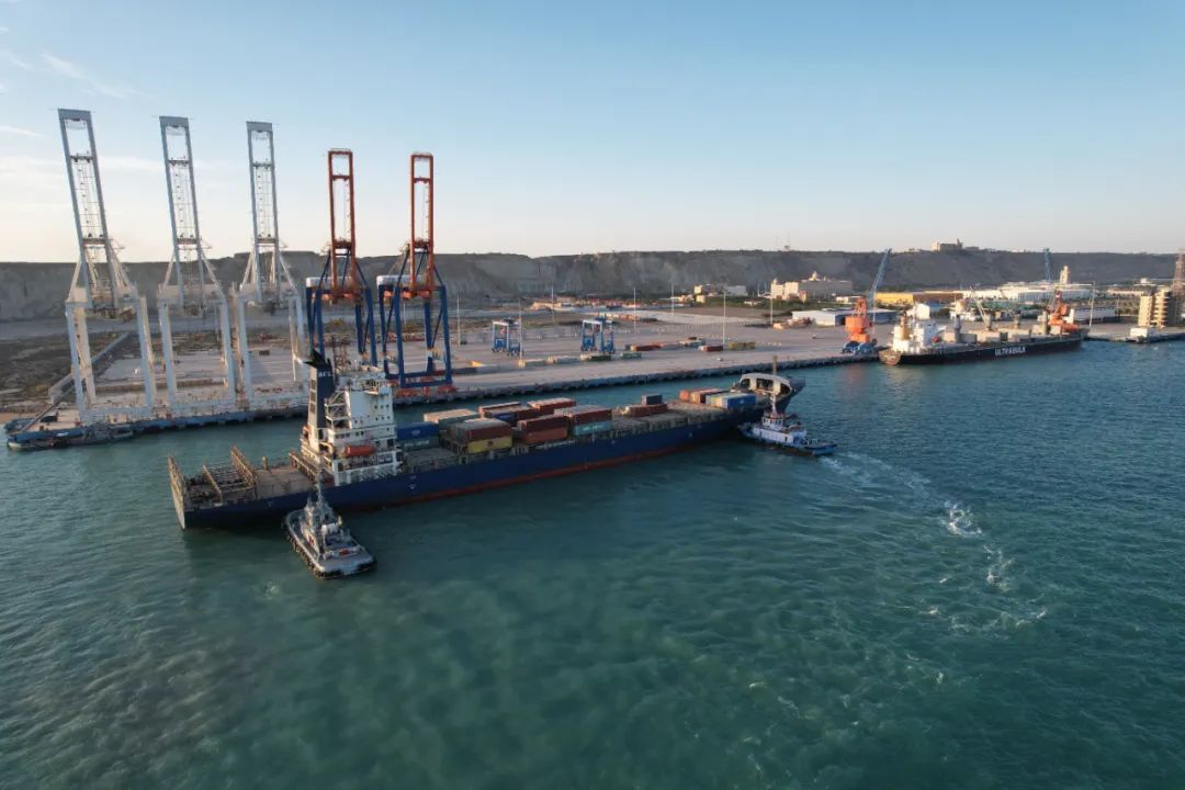 货轮停靠巴基斯坦瓜达尔港。程是颉、沙赫扎德·赛义德摄影报道