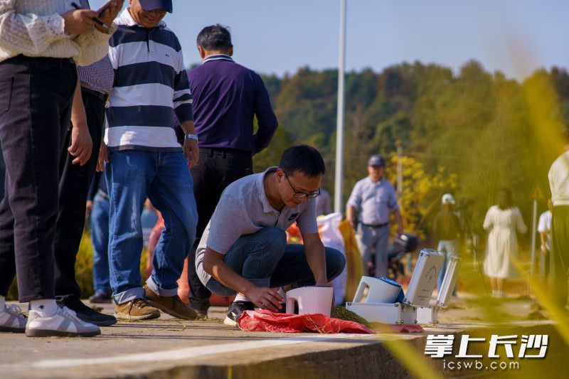 24日,长沙市粮食生产“四高”试验示范区晚稻测产活动在长沙县春华镇龙王庙村大桥组举行。均为长沙晚报全媒体记者 邓迪 何文瑞 摄影报道