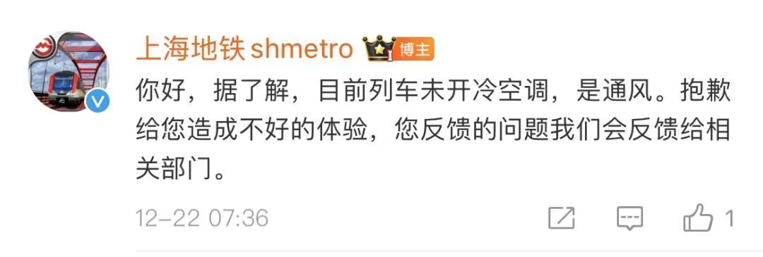 有车厢还在开冷空调?上海地铁回应