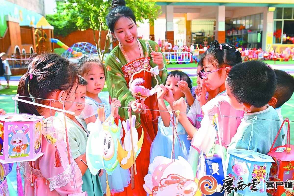 9月28日,合浦县廉州镇旭日幼儿园举办“喜迎中秋 欢庆国庆”民俗文化体验活动。林启波 摄