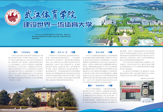 70年来,武汉体育学院踔厉奋发、勇毅前行,已经发展成为一所具有光荣办学历史、鲜明办学特色、辉煌办学成就的体育大学,为中国体育教育和湖北高等教育作出了重要贡献。