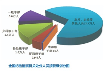 2023年1至9月,全国纪检监察机关共接收信访举报261.7万件次,其中检举控告类信访举报81.9万件次。处置问题线索128.3万件,其中谈话函询26.6万件。立案47万件,其中立案中管干部54人、厅局级干部2480人、县处级干部2万人、乡科级干部6.5万人;立案现任或原任村党支部书记、村委会主任4.6万人。处分40.5万人,其中党纪处分33.1万人、政务处分10.8万人;处分省部级干部34人,厅局级干部2244人,县处级干部1.6万人,乡科级干部5.4万人,一般干部5.6万人,农村、企业等其他人员27.7万人。