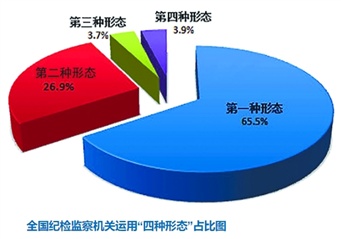 2023年1至9月,全国纪检监察机关运用“四种形态”批评教育帮助和处理共119.7万人次。其中,运用第一种形态批评教育帮助78.5万人次,占总人次的65.5%;运用第二种形态处理32.1万人次,占26.9%;运用第三种形态处理4.4万人次,占3.7%;运用第四种形态处理4.6万人次,占3.9%。