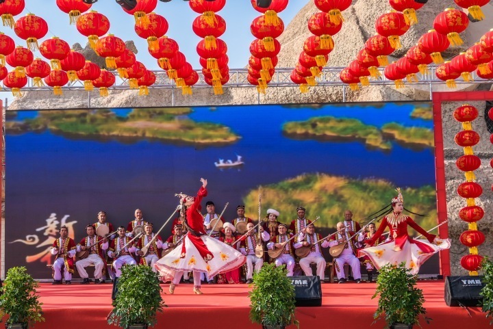 1月10日,位于塔克拉玛干沙漠边缘的新疆新和县依其艾日克镇加依村格外热闹,迎着都塔尔、弹布尔等轻快乐声,新和县文工团演员亚力昆·牙生和果农、乐器工匠们踏着鼓点,挥舞双臂,跳起了传统歌舞赛乃姆,欢乐撒满了这个天山脚下的小村。