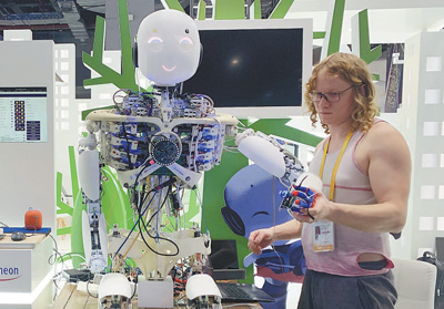 科技生活展区内,有一位活泼可爱的“小男孩”——机器人Roboy。它会笑会闹,会害羞,会卖萌。Roboy的四肢通过3D打印技术重现了人类的骨骼、肌肉和肌腱,与真人极其相似,胸部则布满各种元器件。德国英飞凌科技展台工作人员解释说:“特意露出这些元器件,是为了让观众了解机器人内部的结构特征。你别小看它们,这是一套用半导体器件组成的神经网络系统,从而赋予机器人听觉、视觉和感知功能。”Roboy会蹬三轮车,最近还学会了如何售卖冰激凌。英飞凌科技大中华区总裁苏华表示,“参加进博会是公司今年最重要的活动之一。第二届进博会规模更大、质量更高、服务更优,展品的科技含量也会更足。进博会为我们展示优质产品和服务提供了广阔平台。”