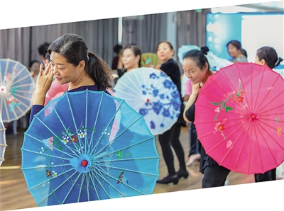 在中心,妙舞清歌,水袖飞舞,市民可以体验“贴片”“上彩”,亲身演绎梨园之美。走出去,赵津羽和中心老师向社区老人推广创编的昆韵手指操,为学校学生讲解昆曲的唱词涵义、唱腔特色,给企业白领普及传统文化礼仪。古北社区外籍居民较多,慕名而来的外国友人络绎不绝,赵津羽的这方小天地,不经意间成为文化交流的纽带。