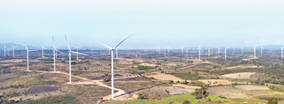 在越南中南部嘉莱省公则若县县城以西,数十座巨型风力发电机的叶片徐徐转动,为当地生产生活供应源源不断的电力。