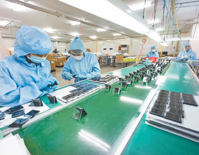 龙江工业园内,方正电机(越南)有限责任公司车间里的当地员工正在工作。