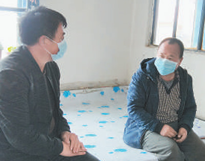 网格员在颜世龙(右)家了解情况。