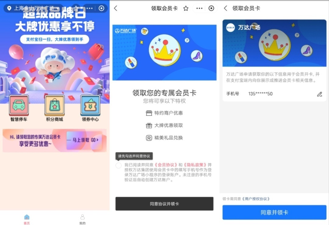 如百联旗下6家商场消费者在扫码后需要提供手机号登录百联会员才能支付停车费。万达旗下3家商场在消费者使用支付宝扫码后以办理万达会员卡为由强制消费者提供个人信息。