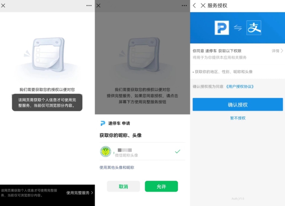 上海市消保委在暗访时同时发现,有18家商场在扫码付停车费过程中强制消费者提供如微信和支付宝的昵称、头像等个人信息。其中多家商场使用的是“速停车”第三方服务。