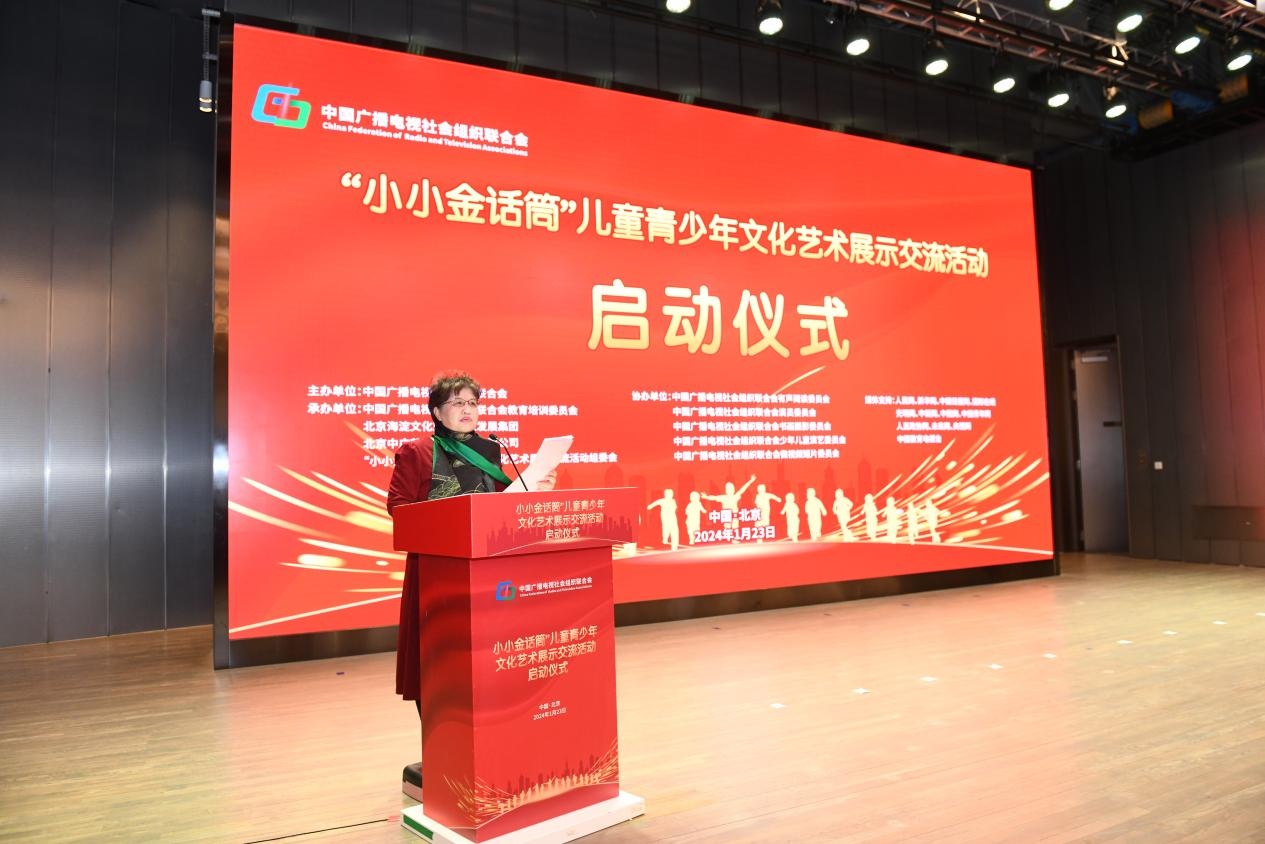 2024年1月23日,由中国广播电视社会组织联合会主办,中广联合会教育培训委员会、北京海淀文化旅游产业发展集团等单位承办的“小小金话筒”儿童青少年文化艺术展示交流活动在北京启动。