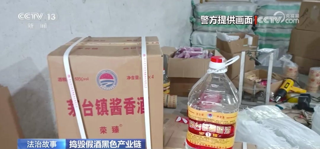 在现场,警方查获将近3000瓶成品酒,2000多斤的原料酒,还有灌装机、打包机以及印有茅台标识的酒瓶、防伪标签。此外,在回收站的一个房间里,民警还发现了一些账本,账本中列明了这个团伙制作售卖假酒的具体交易记录。