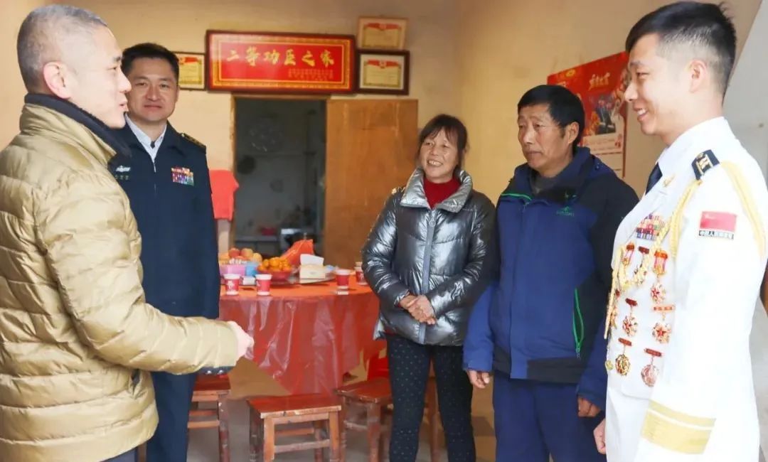 为立功受奖的军官刘强登门送喜