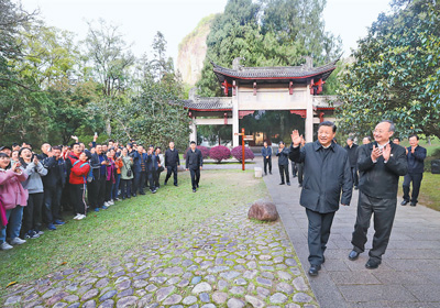 2021年3月22日至25日,中共中央总书记、国家主席、中央军委主席习近平在福建考察。这是22日下午,习近平在南平武夷山朱熹园考察时,向游客招手致意。