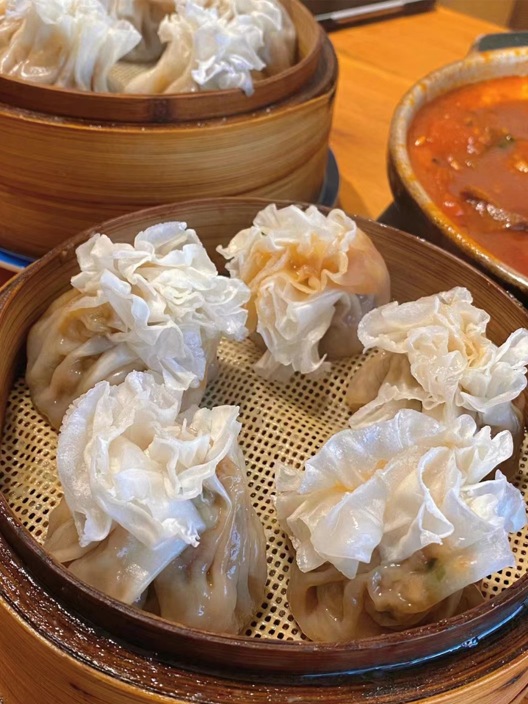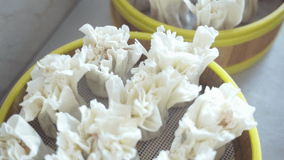 前有实打实的莜面,后有包菜的卷卷,倘若包上肉馅,那便是软糯的浮山烧麦。一笼浮山烧卖,如同一捧朵朵绽放的石榴花,令人赏心悦目,一口咬下,肉汁喷薄而出,顿感心花怒放,这下,色香味俱全,一饱眼福口福了。