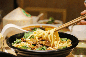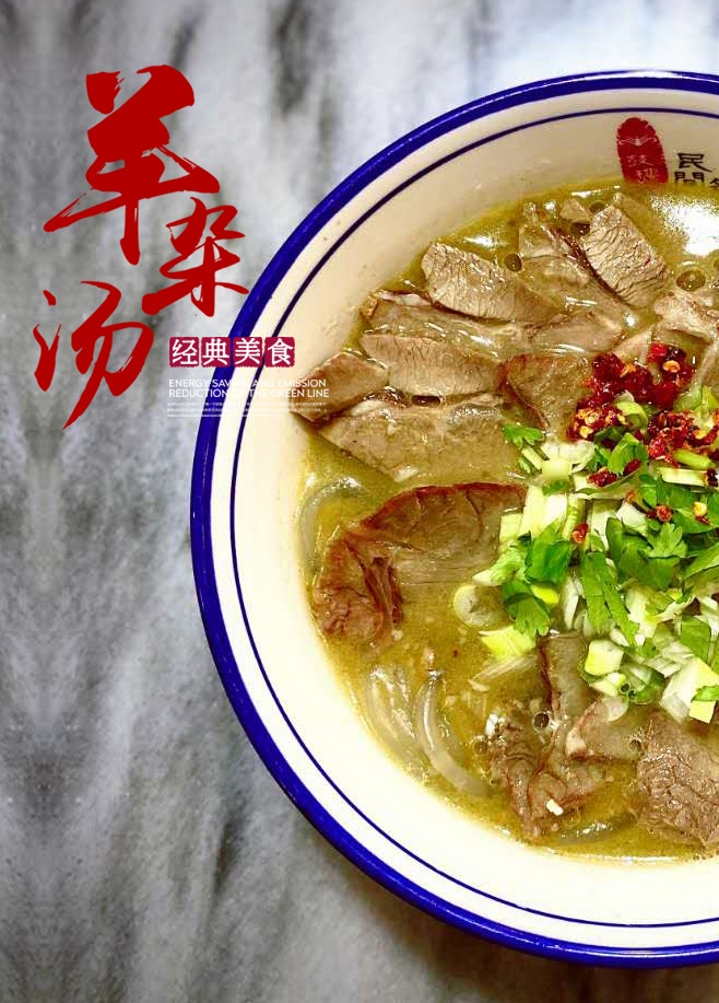 羊汤,汤底浓郁,丝毫没有羊膻味儿,粗粉丝配着大片羊肉,便是小编最爱的羊肉汤,喝羊汤一定要配招牌火烧。一口汤来一口饼,入口后你就会知道什么是“不羡鸳鸯不羡仙”!