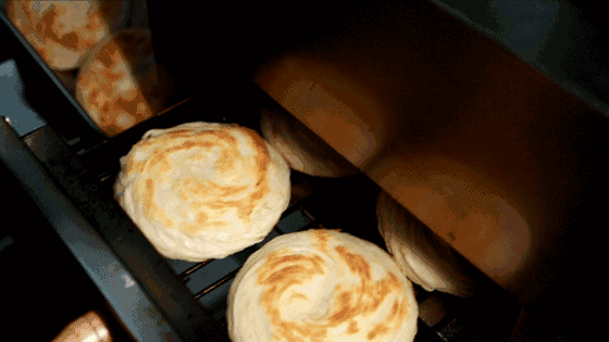 但稷山烧饼的工艺也毫不含糊,烤饼用生铁铸造的铁鳌子,虽没有不锈钢板的利落,但正好保留了那份原汁原味!经由铁鳌子,发酵的饼子虚泛膨胀起来,再经由打饼师傅们的妙手绝活,半圆形的、圆形的、三角形的火烧纷纷出炉,一鏊即可出炉七八个,形态各异,又饶有风味,怪不得朱元璋流落到稷山时一尝便念念不忘。