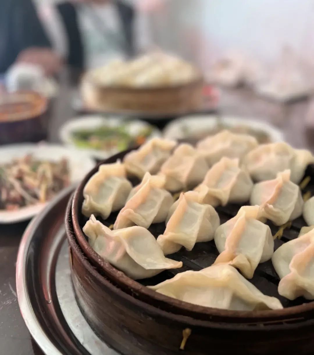 蒸饺,现做的蒸饺,皮薄陷大,一口咬下去满满的菜肉香。