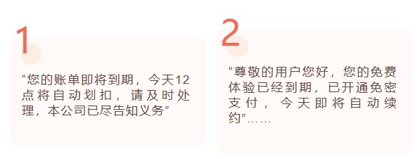 事由则绝大部分都是“免费服务已到期”“用户开通免密自动扣款即将扣款”等,