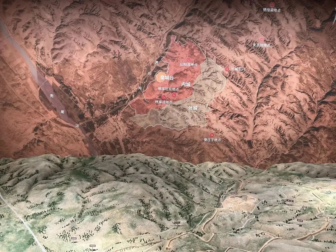 石峁古城始建于距今约4300年,废弃于距今约3800年前后,总面积400多万平方米,相当于6个故宫大小,是东亚地区已知规模最大的龙山时期石城。主体为三重城结构,规模宏大、气势雄伟。这一展区通过大量的石雕文物和微缩景观,向观众介绍石峁作为王者之城所具备的特质。