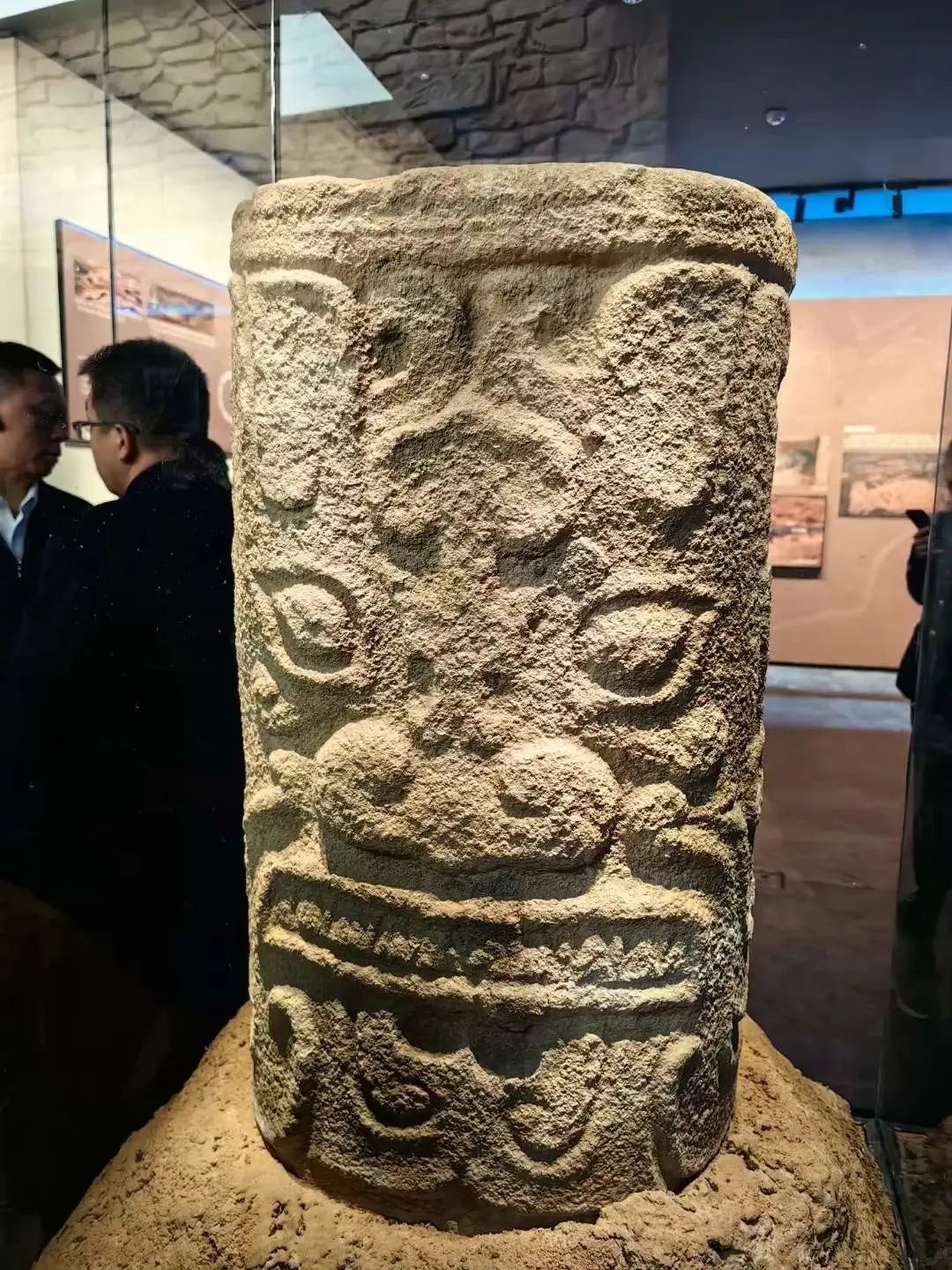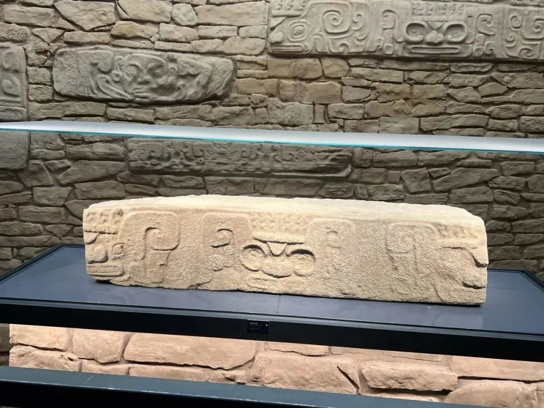 造型墙上,集中展示了各种石雕,有倒置的人面石雕,有三个神面的石雕,有单面、双面雕刻的石雕等。神面石雕的图案分好几种,以神面纹居多,比较有趣的一种是似兽非兽、似人非人的状态,有的比较写实,面带笑容,甚至吐着舌头。