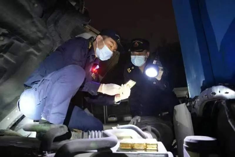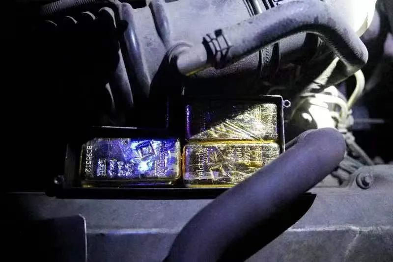 海关关员对一辆进境空车开展机检查验时发现车头处机检图像异常,随即开展人工查验,发现在车辆发动机上方有一处改装暗格,内藏物品黄金金条。经清点,上述暗格藏匿黄金共计30块,每块黄金重量为1千克,共30千克。