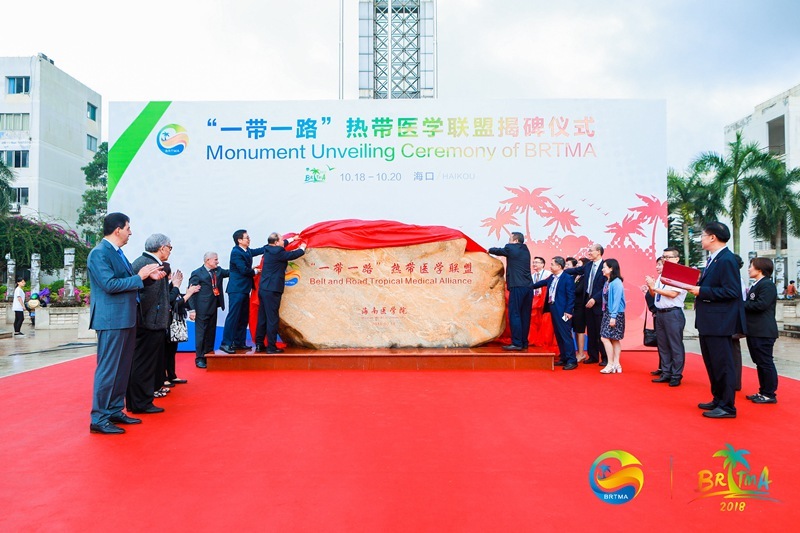 “一带一路”热带医学联盟揭碑仪式。海南医学院供图