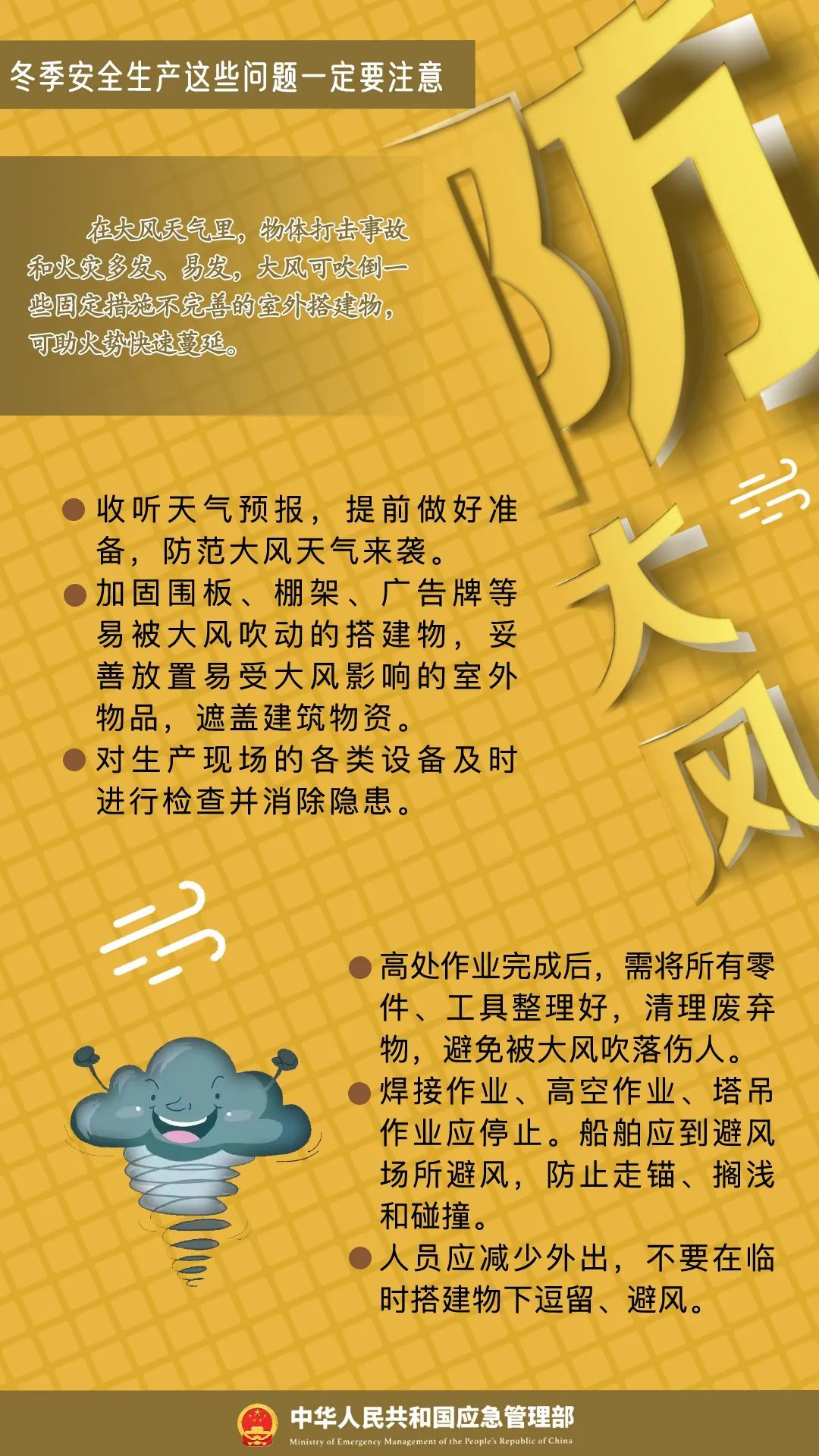 4. 做好防风准备工作。