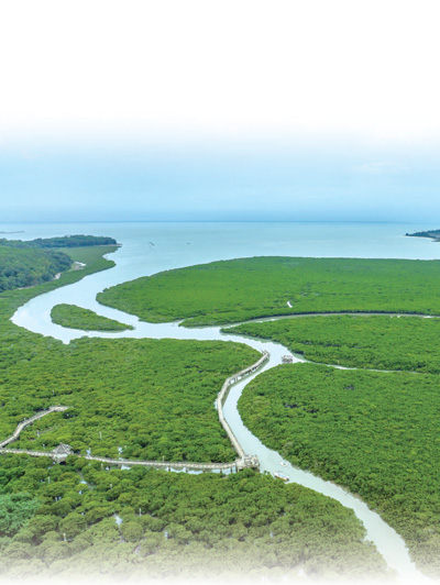 从广西北海市向东驱车约一个半小时,便来到了合浦县沙田半岛。放眼望去,海岸线上翠木葱茏,那是万亩红树林在海浪的推动下摇曳生姿。成群的鹭鸟不时起落,生趣盎然。