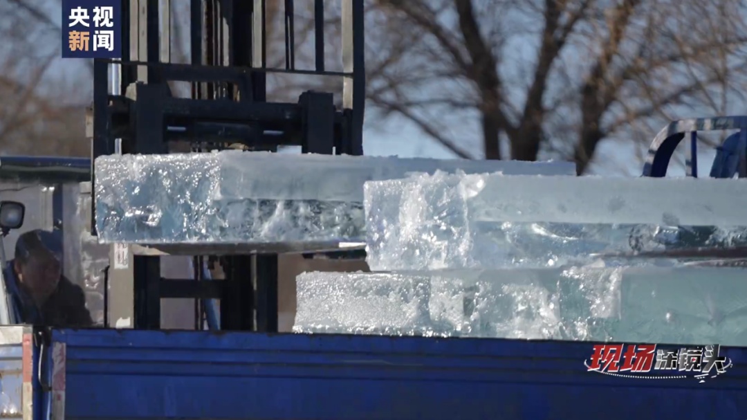 之后,冰块就被叉车托运到