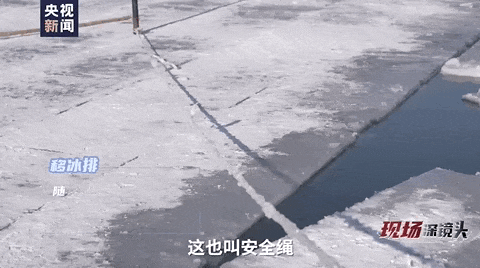 用冰镩将冰排沿线断开