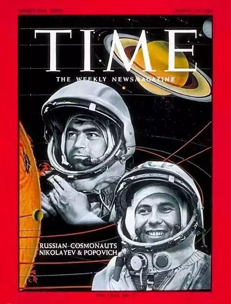 △1962年8月24日发行的时代杂志。封面人物为俄国宇航员尼克诺耶夫和波波维奇,使用了“Cosmonaut”一词。