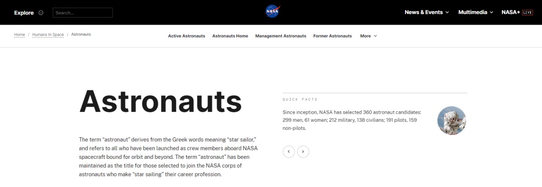 △NASA官网对宇航员的称呼为“Astronaut”