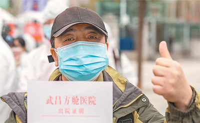 2月11日下午,武汉武昌方舱医院,首批患者康复出院。