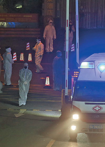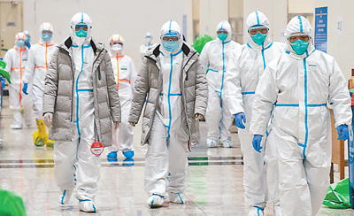 2月5日,在武汉江汉方舱医院,医护人员在做准备工作。