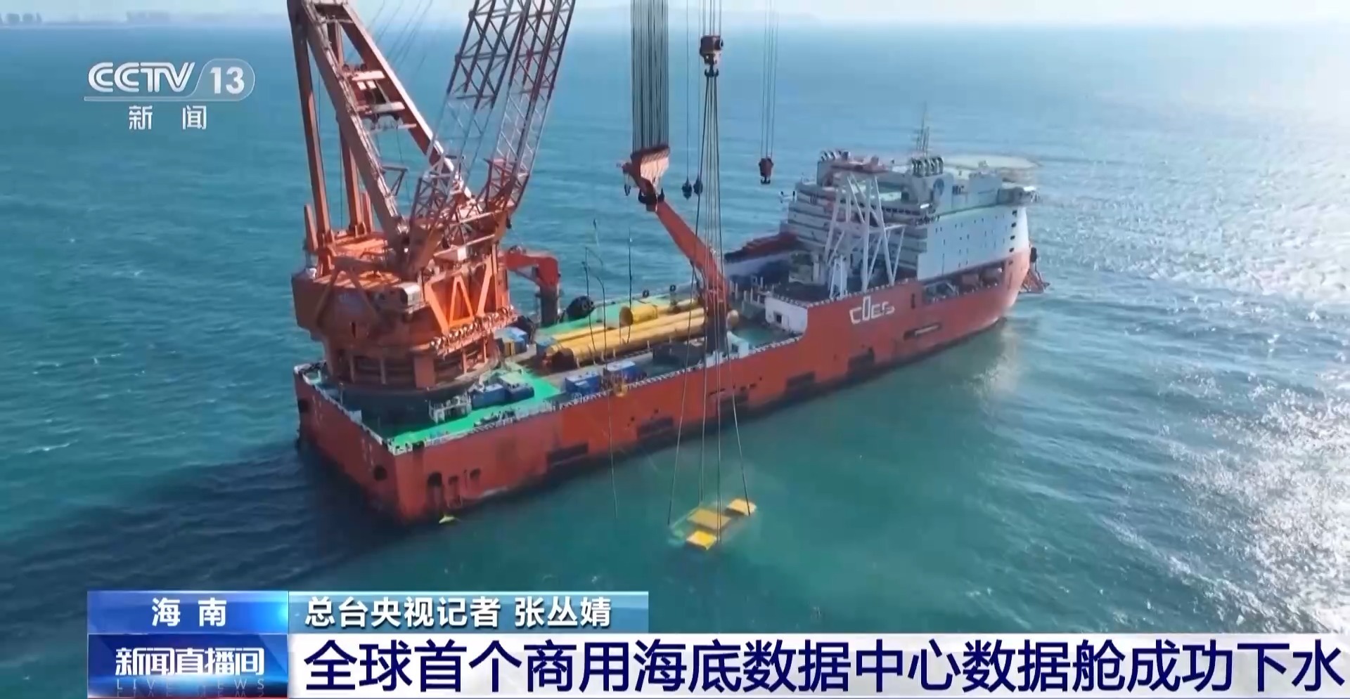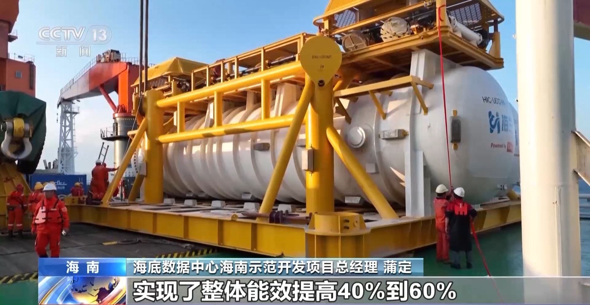 总台央视记者 张丛婧:经过今天上午近3个多小时的下水投放作业,全球首个商用海底数据中心的数据舱,已经下沉到海底35米深。通过潜水控制台上的屏幕,我们可以清晰地看到它在水下的状态。潜水工作人员确认套筒进入防尘板插尖的位置,检查复核后,把插销推送到位,这意味着下水安装成功。