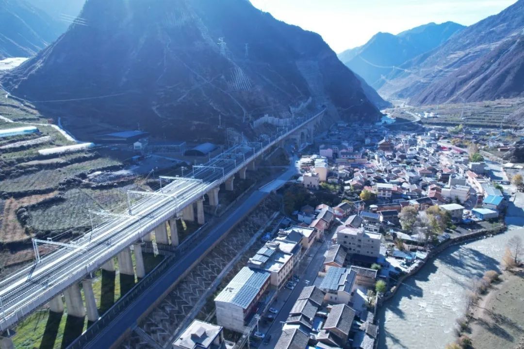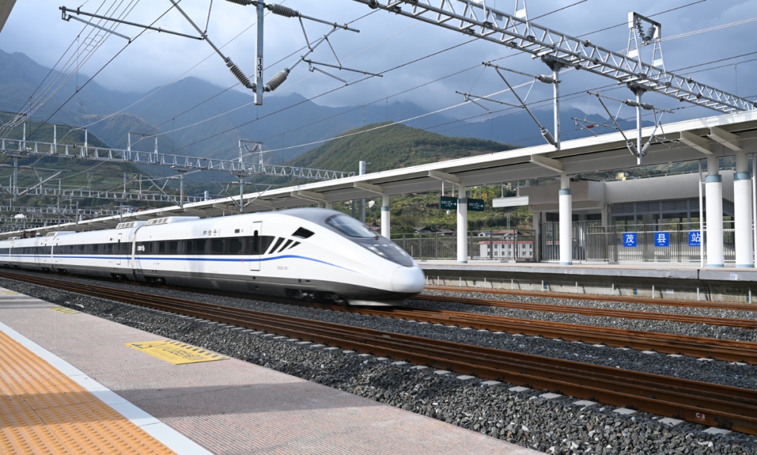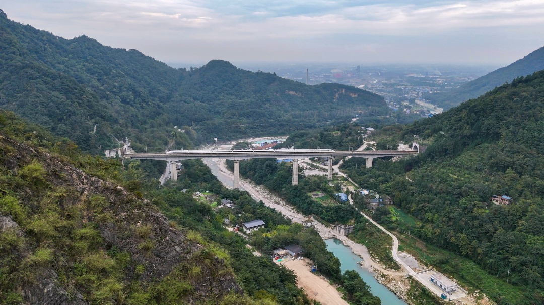 动车组列车运行在川青铁路安州站至高川站间▼@龙建睿