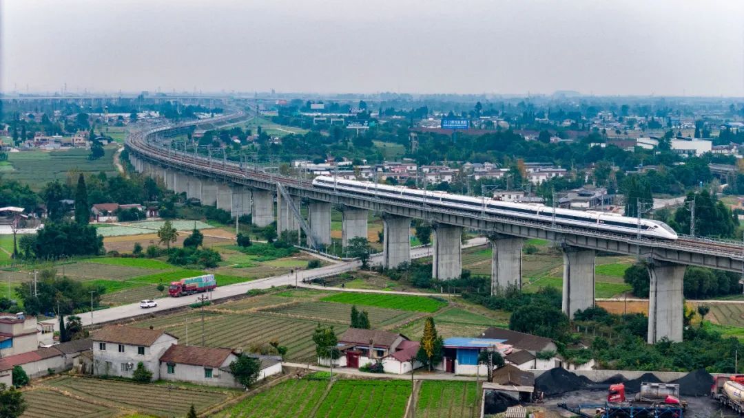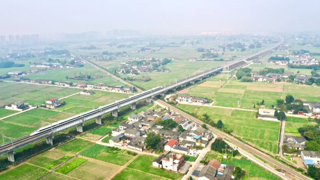 动车组列车运行在川青铁路成都平原上▼@胡志强