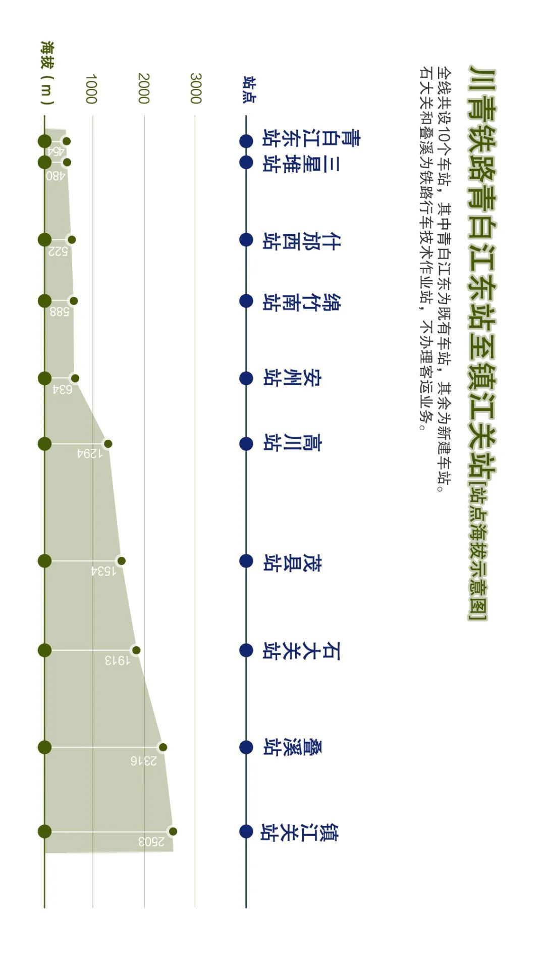 川青铁路青白江东至镇江关段站点海拔示意图▼
