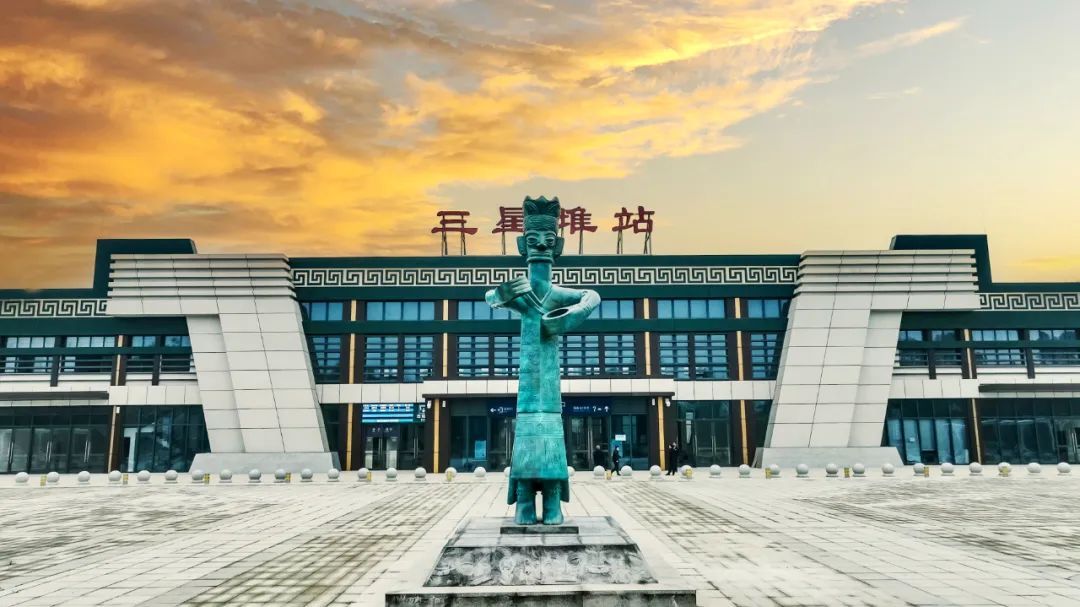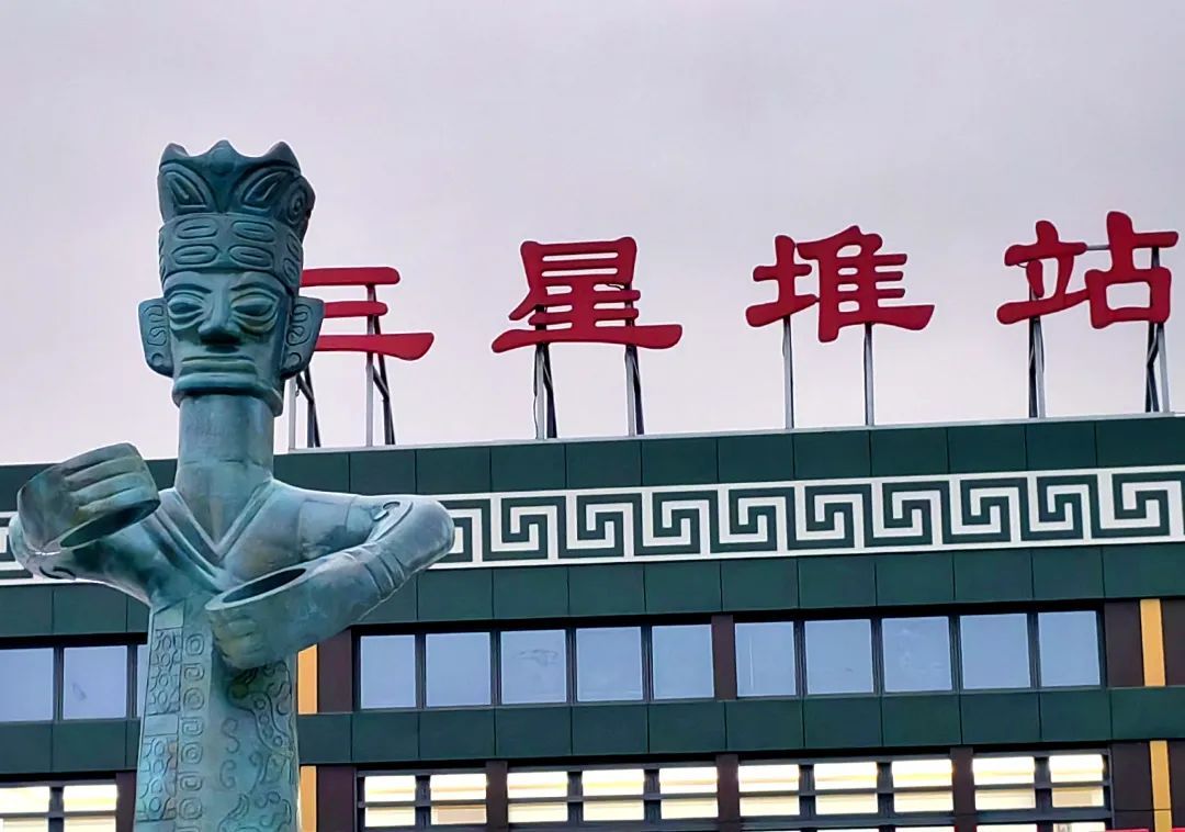 三星堆站站前广场青铜大立人复刻铜像▼@李富彬