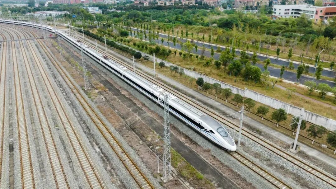 动车组列车运行在川青铁路广汉市境内▼@袁成奇