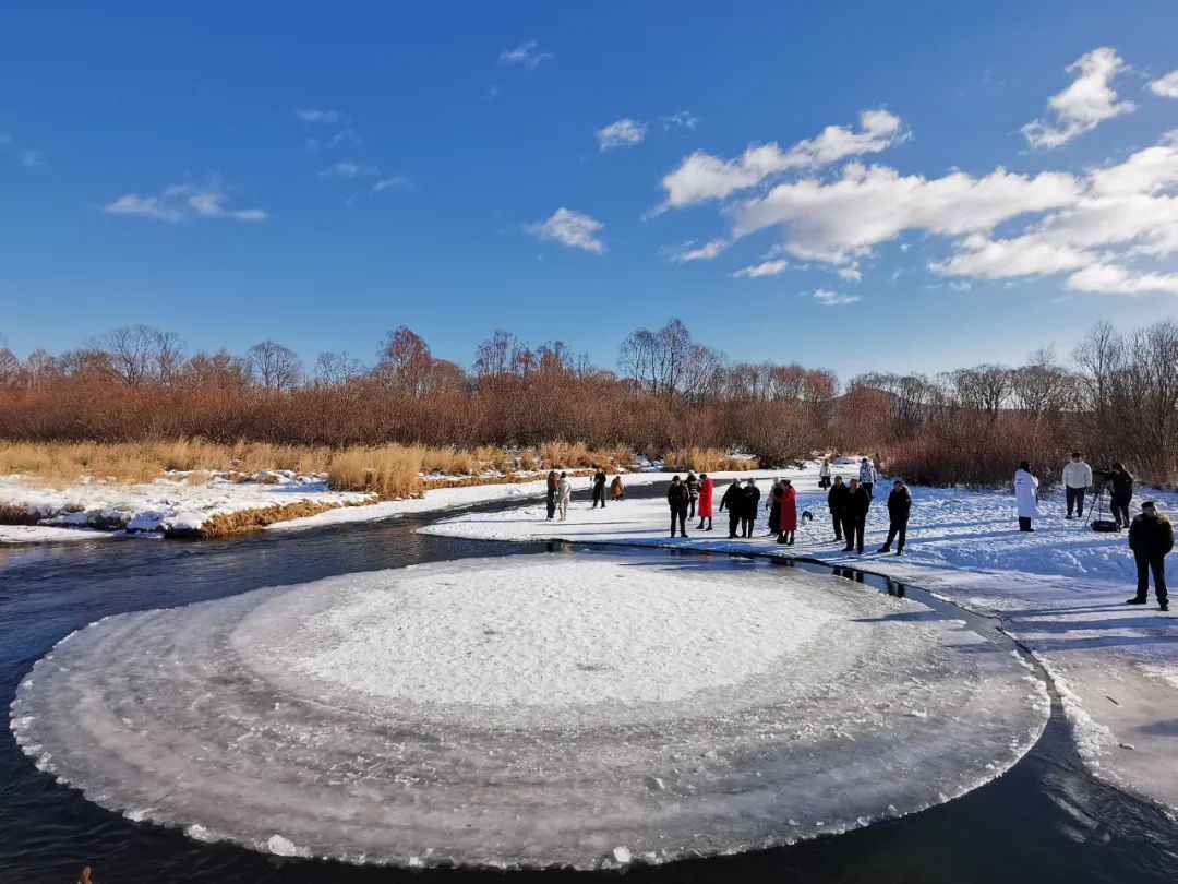 入冬以来,牙克石市气温持续走低,大小河流呈封河趋势。在绰河源镇偏北乌塔公路3公里处的绰尔河水面上,出现罕见“冰圈”现象。记者在现场看到,河水中一个直径约13.5米的圆形冰盘,正随河水流动逆时针旋转,众多游客慕名而来,或拍照打卡或游玩嬉戏,亲身感受这冰雪世界的浪漫与神奇。