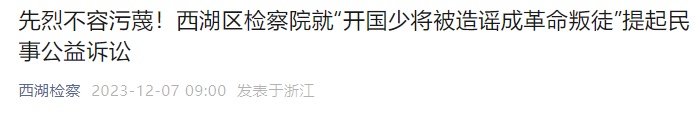 今年8月,开国少将何克希照片被某些自媒体盗用成“革命叛徒”的短视频被大量转发,引起了何克希将军家属的关注,何克希将军家属向西湖区检察院反映何克希将军肖像、名誉和荣誉被侵害的情况。